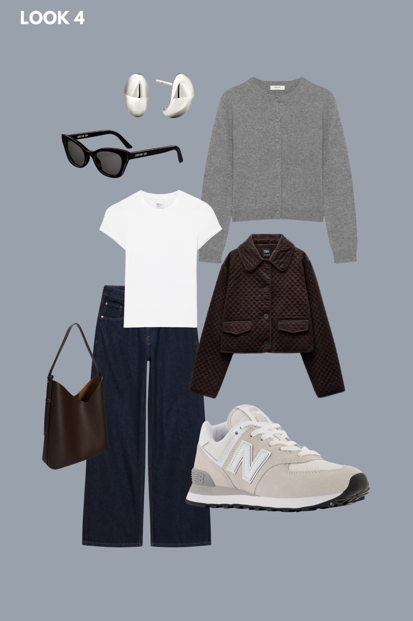 30-40 items with links (tops, bottoms, outerwear, accessories)